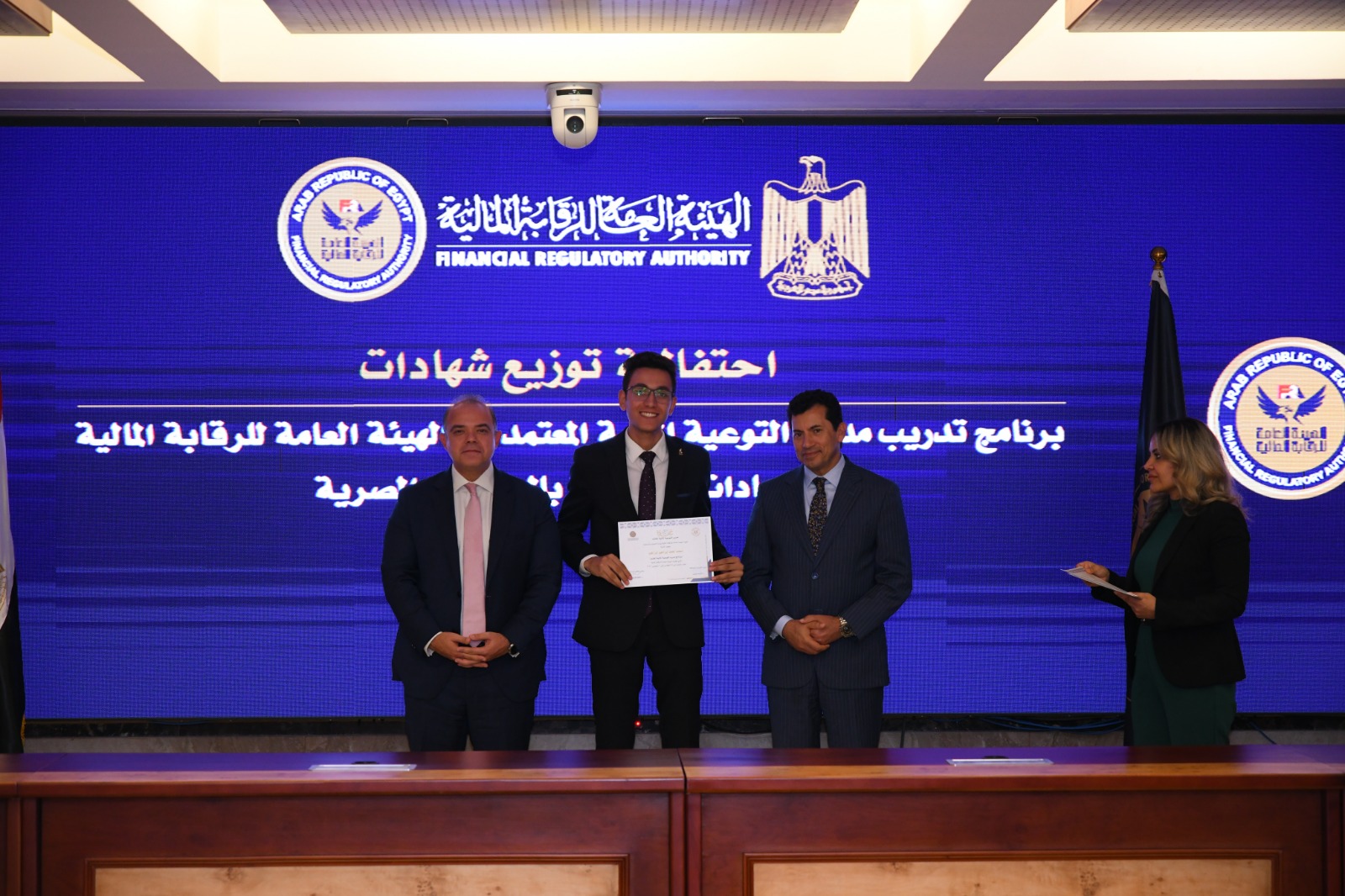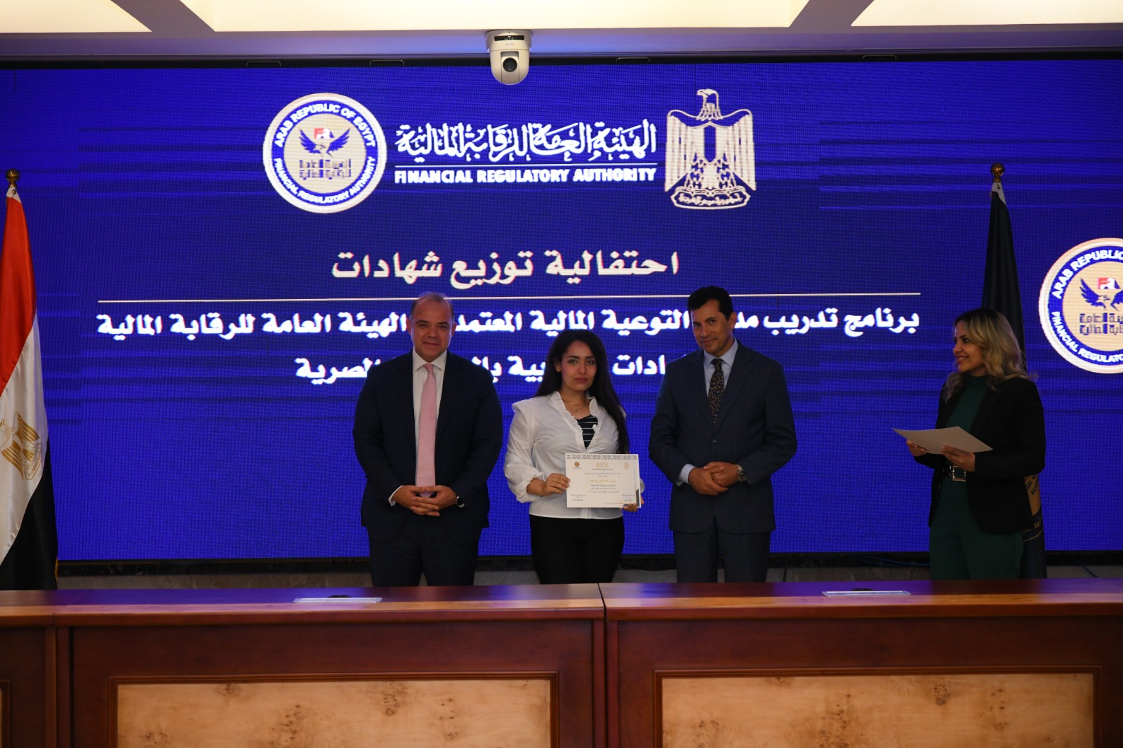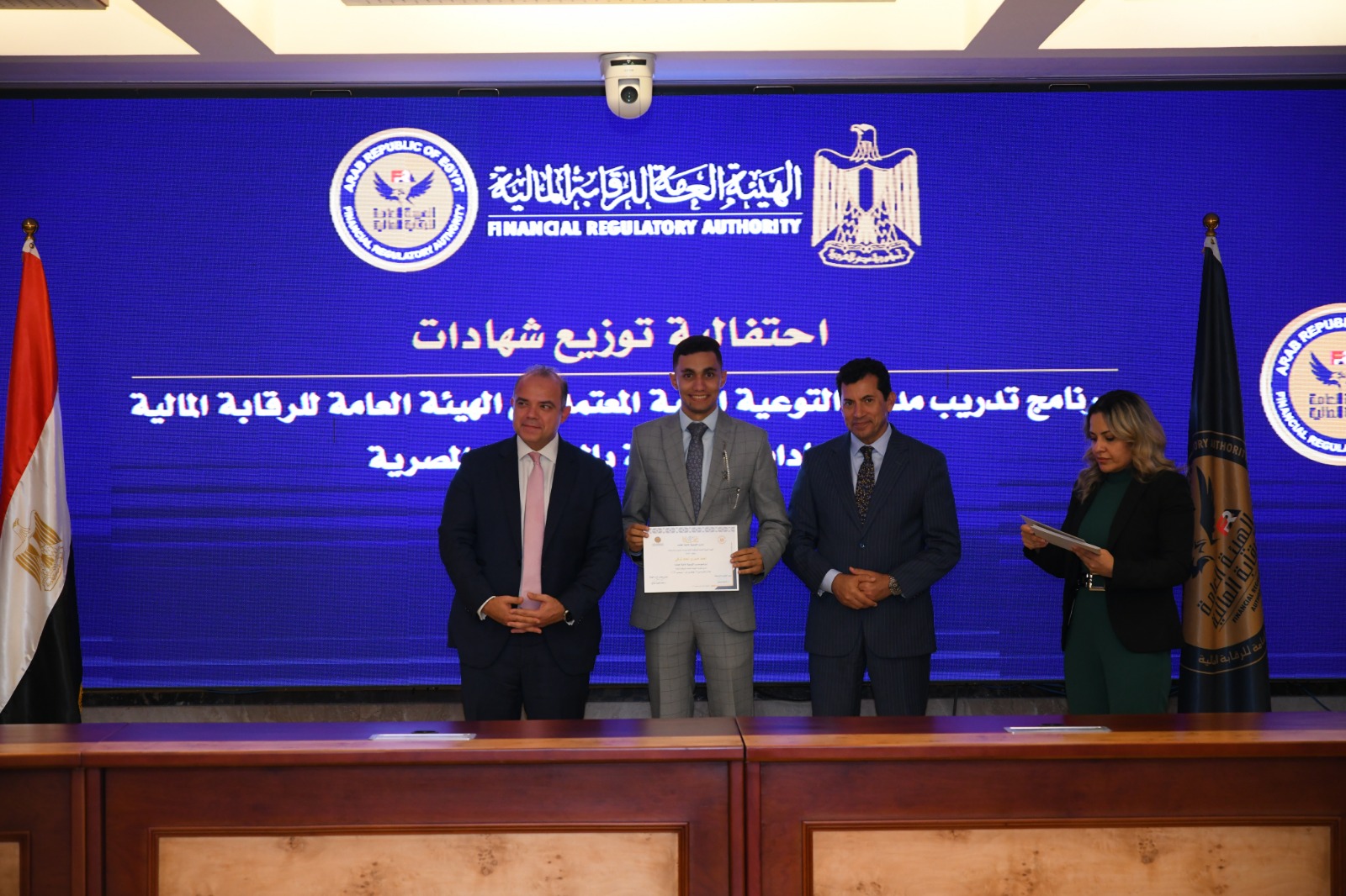 حيث شهد الدكتور محمد فريد، رئيس الهيئة والدكتور أشرف صبحي وزير الشباب والرياضة، مراسم حفل تسليم شهادات الدفعة الرابعة من خريجي برنامج "مدرب التوعية المالية المعتمد" لتأهيل مدربين مُعتمدين لنشر الثقافة والتوعية بالأنشطة المالية غير المصرفية بين الشباب تفعيلًا للاستراتيجية الوطنية المصرية للتوعية والثقافة المالية غير المصرفية (٢٠٢٢-٢٠٢٦)، وتماشيًا مع محاور الاستراتيجية الوطنية للشباب والنشء.