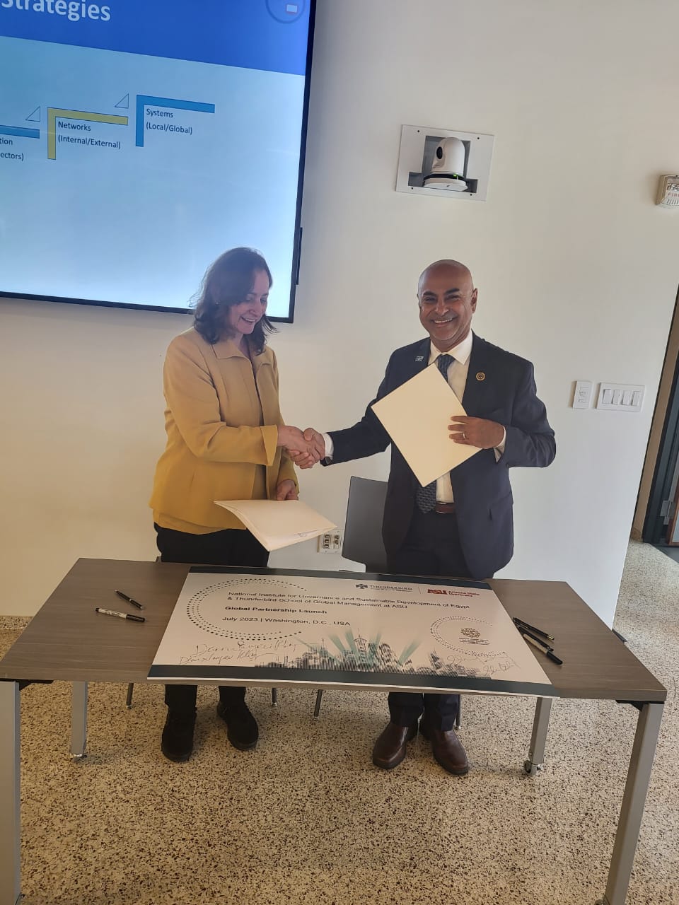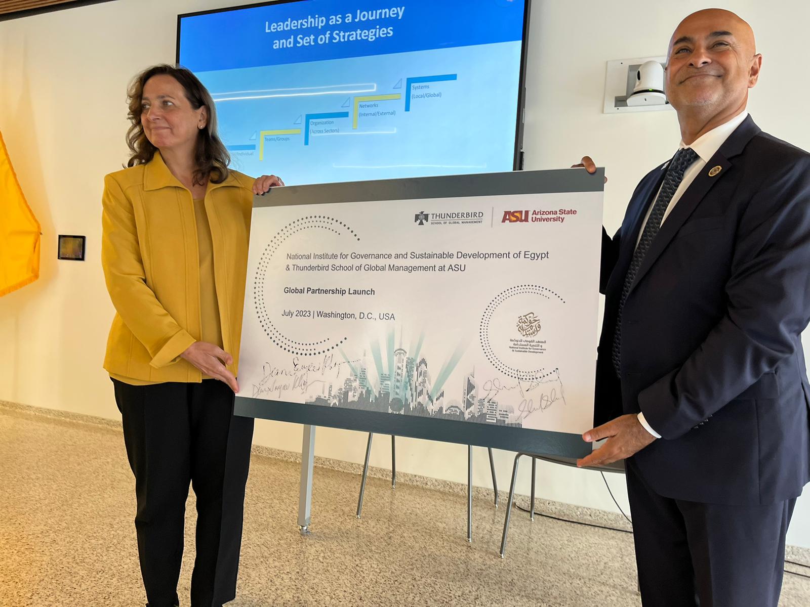 اختتم المعهد القومي للحوكمة والتنمية المستدامة -الذراع التدريبي لوزارة التخطيط والتنمية الاقتصادية- فعاليات البرنامج التدريبي "الحوكمة المبتكرة في العصر الرقمي" بالشراكة مع كلية ثندربيرد للإدارة الدولية التابعة لولاية أريزونا وذلك بمقر الكلية بالعاصمة الأمريكية واشنطن.