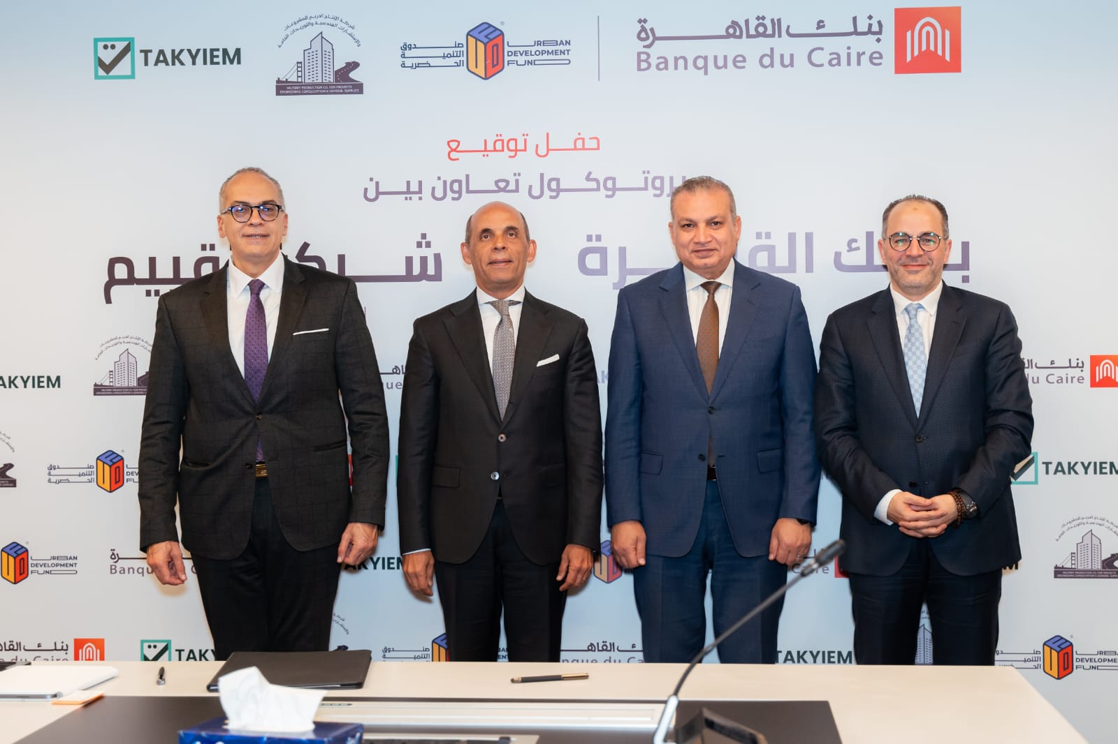 وقع بنك القاهرة وشركة عين لاستثمارات الفرانشيز (تقييم لإداره المشروعات ) عقد إتفاق لتسويق وترويج وتمويل الوحدات السكنية لمشروعات المبادرة الرئاسية لتطوير عواصم المحافظات والمدن الكبرى فى نطاق بعض محافظات الجمهورية لصالح صندوق التنمية الحضرية.