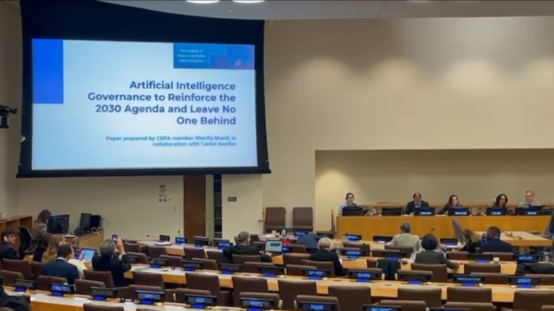 وجاءت المشاركة الثانية للدكتورة شريفة شريف بمناقشة ورقة بحثية بعنوان "حوكمة الذكاء الاصطناعي للنهوض بخطة 2030 كي لا يُترك أحد خلف الركب" والتي قدمتها بالتعاون مع عضو اللجنة كارلوس سانتيسو.