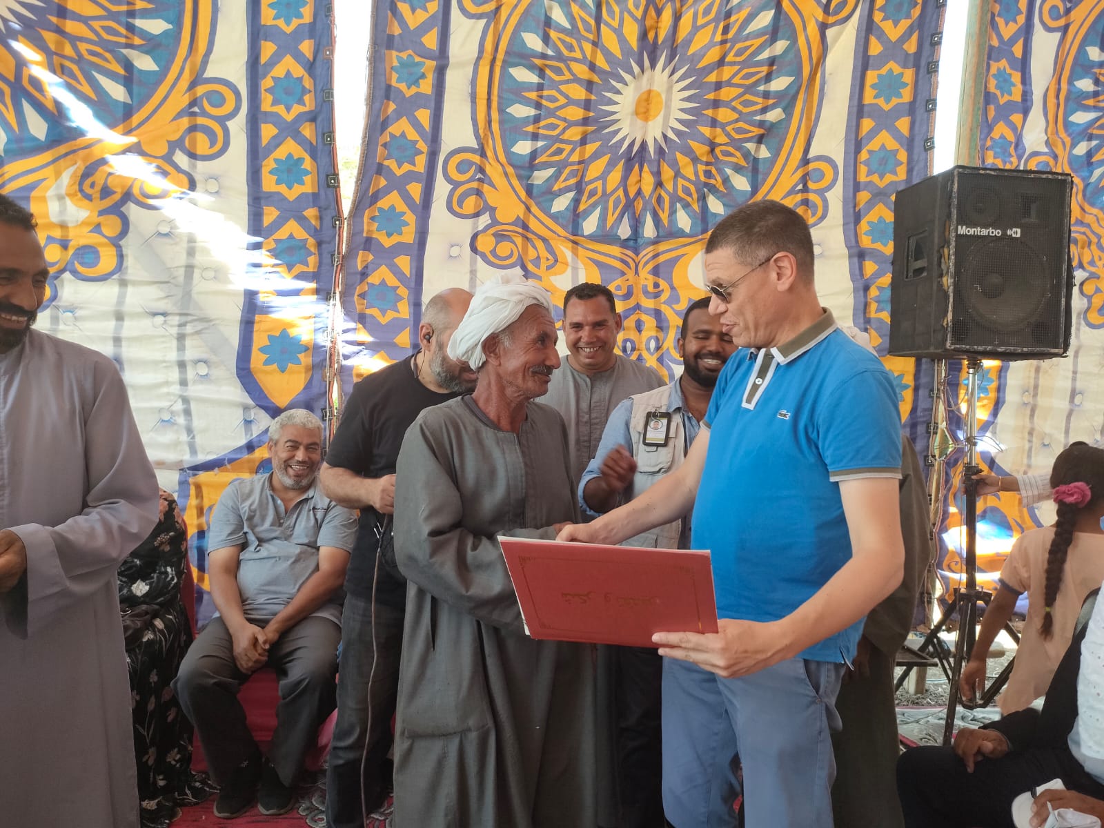 نظم الجهاز التنفيذي لمشروعات التنمية الشاملة بوزارة الزراعة احتفالية في الاقصر لحصاد احد حقول القمح المشاركة فى مبادرة توحيد الحيازات الزراعية المفتتة والتى تم زراعتها بأساليب وطرق الزراعة الحديثة لتوفير المياة وزيادة الكفاءة الإنتاجية. وذلك من خلال مشروع تعزيز المرونة المناخية وتحسين مستوى الأمن الغذائي لصغار المزارعين فى صعيد مصر. والذى ينفذ بالشراكة مع برنامح الأغذية العالمي وبتمويل من السفارة الهولندية بالقاهرة.