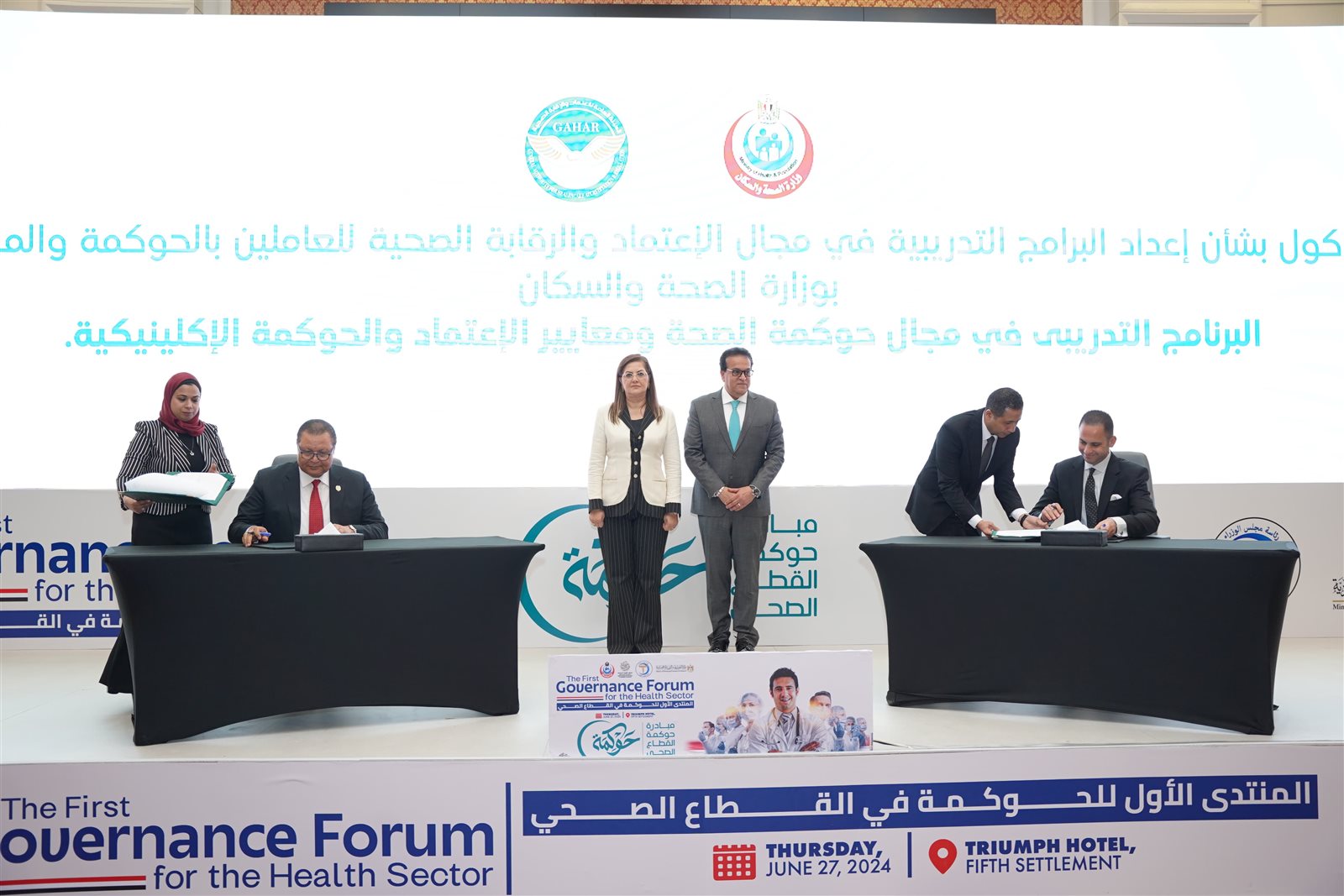 افتتحت اليوم د. هالة السعيد، وزيرة التخطيط والتنمية الاقتصادية ورئيس مجلس أمناء المعهد القومي للحوكمة والتنمية المستدامة، د. خالد عبد الغفار، وزير الصحة والسكان، د. شريفة شريف، المدير التنفيذي للمعهد القومي للحوكمة والتنمية المستدامة؛ المنتدى الأول للحوكمة في القطاع الصحي، والذي ينعقد بالتعاون بين وزارة الصحة ومعهد الحوكمة وأمانة الشئون الطبية بمجلس الوزراء، وكلية ثندر بيرد للإدارة العالمية بالولايات المتحدة الأمريكية، وذلك بحضور قيادات الوزارتين، د. أحمد طه، رئيس الهيئة العامة للاعتماد والرقابة الصحية، وعدد من أعضاء مجلس النواب الأكاديميين والخبراء في المجال الصحي والمجتمع المدني.