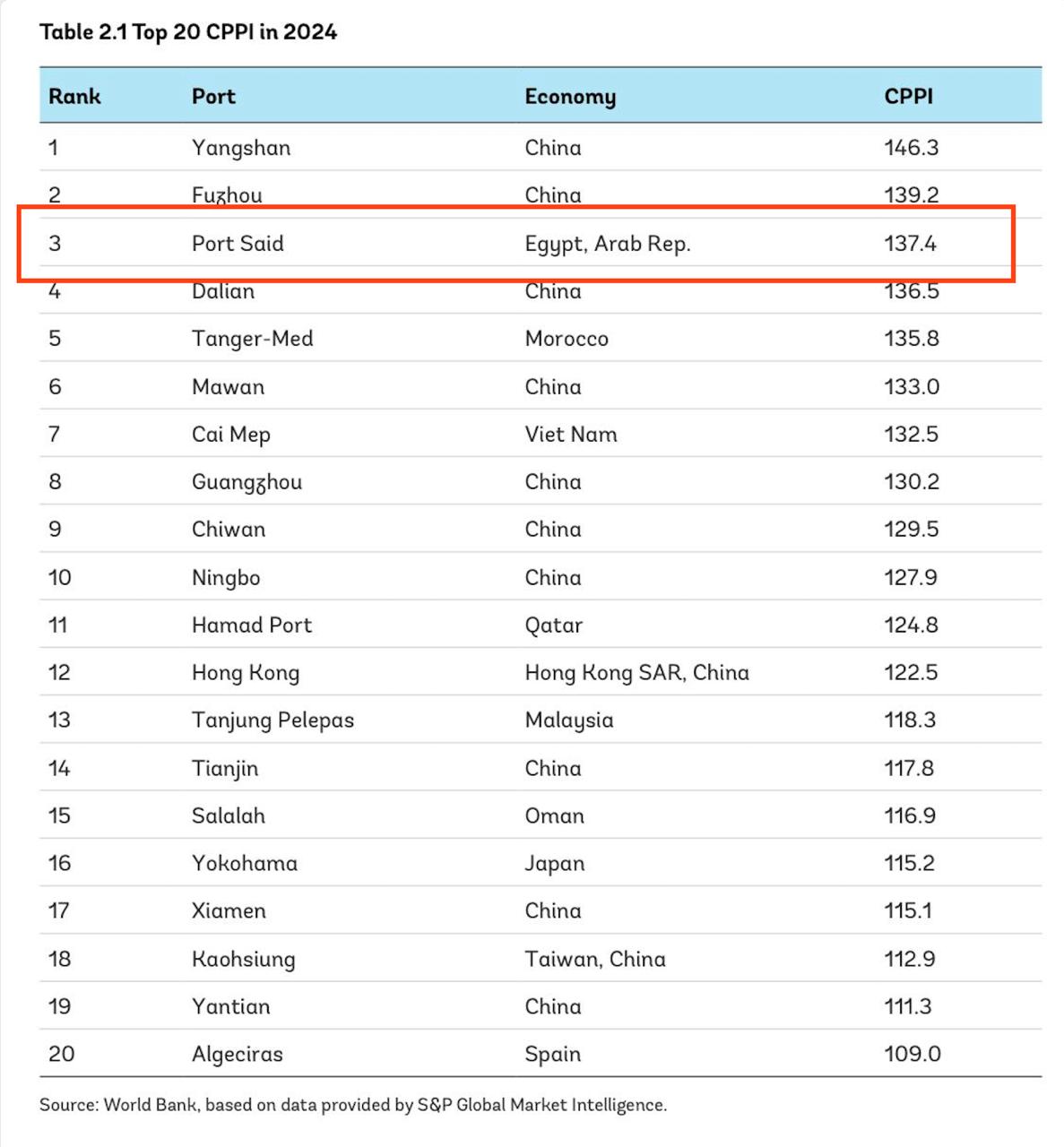الجدير بالذكر أن مؤشر أداء موانئ الحاويات (CPPI)، الصادر عن البنك الدولي يقيس كفاءة الموانئ من خلال عدة معايير، تشمل زمن انتظار السفن في الميناء، وكفاءة عمليات الشحن والتفريغ، وجودة البنية التحتية، ومستويات الرقمنة في إدارة الميناء، ومدى تكامل الميناء مع شبكات النقل والخدمات اللوجستية.