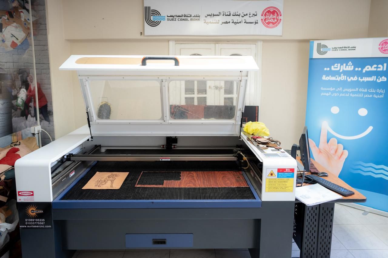 شمل التبرع توفير ماكينة ليزر فى مركز التدريب الصم وضعاف السمع بمحافظة الجيزة لدعم (250 ) شاب وشابة من فئة الصم وضعاف السمع الذين يمتلكون حرف يدوية لتشغيل الوحدات الأنتاجية، بجانب توفير الكميات المطلوبة من الأنتاج من الجلود والأقمشة والأخشاب وغيرها من الخامات التى تساهم فى جودة الإنتاج في كل من محافظة أسيوط والفيوم والمنيا والقاهرة والتي تخدم آلاف الأسر لتمكين فئة ذوي الهمم اقتصاديًا في المجتمع.