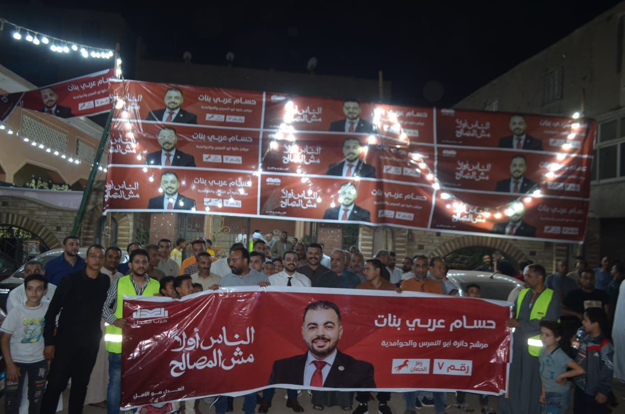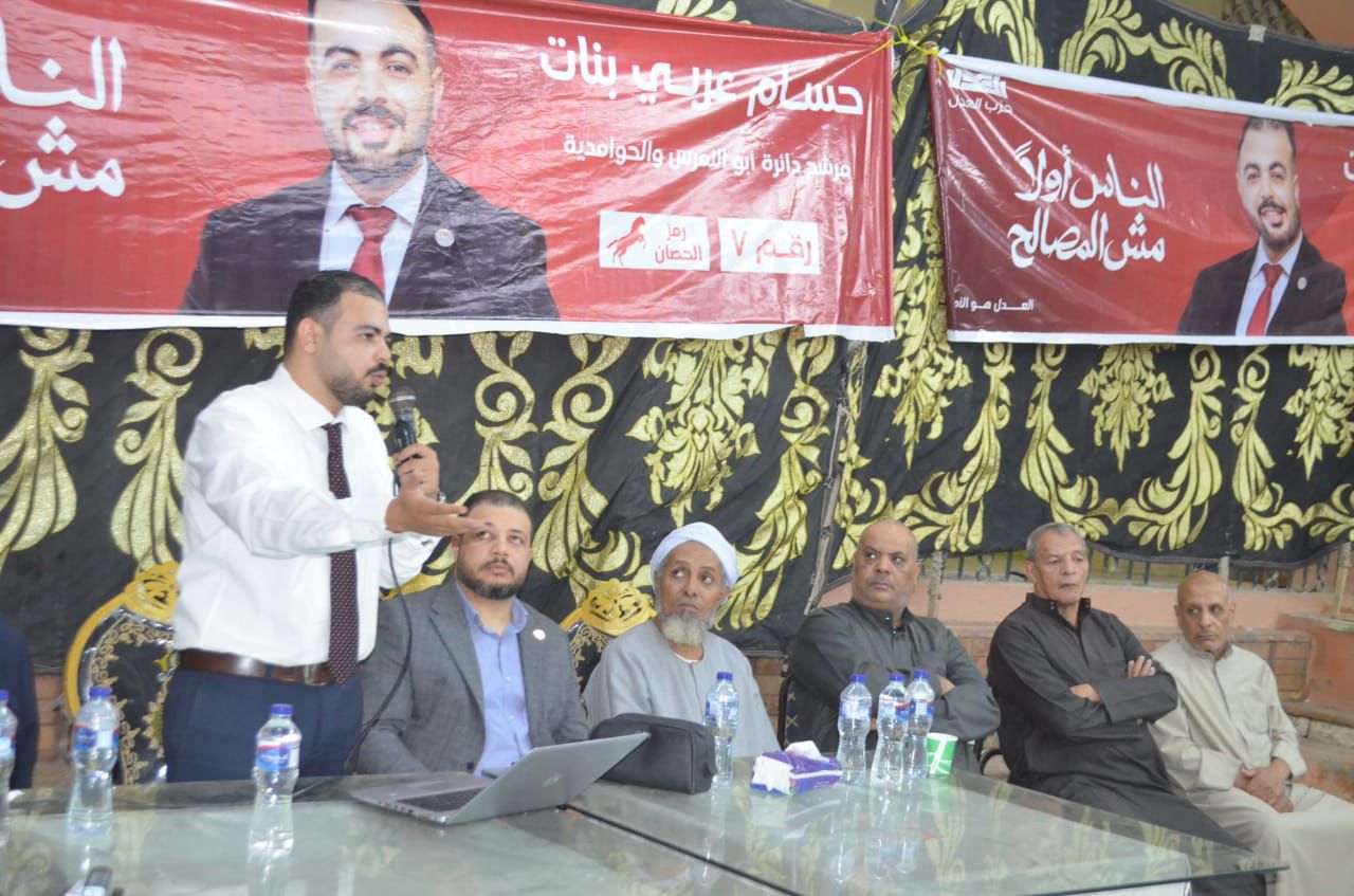 وخلال كلمته، وجّه حسام عربي الشكر لأهالي الدائرة على دعمهم، مؤكدًا أن ترشيحه من قبل حزب العدل جاء تقديرًا لمجهوده في خدمة المجتمع ومشاركته الفاعلة في القضايا العامة.