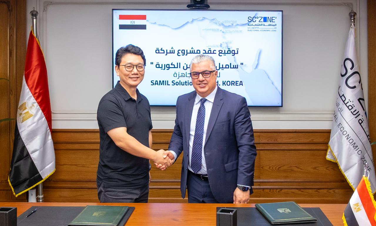 وقّع وليد جمال الدين، رئيس الهيئة العامة للمنطقة الاقتصادية لقناة السويس، بمقر الهيئة بالعاصمة الإدارية، عقد مشروع شركة "ساميل سولوشن- Samil Solution Co.، Ltd" الكورية، المتخصصة في صناعة الملابس الجاهزة، وذلك لإقامة مشروع جديد بمنطقة القنطرة غرب الصناعية التابعة للهيئة، على مساحة 21 ألف متر مربع، بإجمالي استثمارات قدرها 4.49 مليون دولار أمريكي (تعادل نحو 212 مليون جنيه مصري)، ويستهدف المشروع إنتاج الملابس الجاهزة من التريكو والمنسوجات (Knit & Woven Garments) بطاقة إنتاجية سنوية تبلغ 8.8 مليون قطعة، مع تصدير 100% من الإنتاج إلى الأسواق الخارجية، ومن المقرر أن يوفّر المشروع نحو 1000 فرصة عمل مباشرة، وقد وقّع عن الشركة كيم غن وو (Kim Gun Woo)، رئيس مجلس إدارة الشركة.