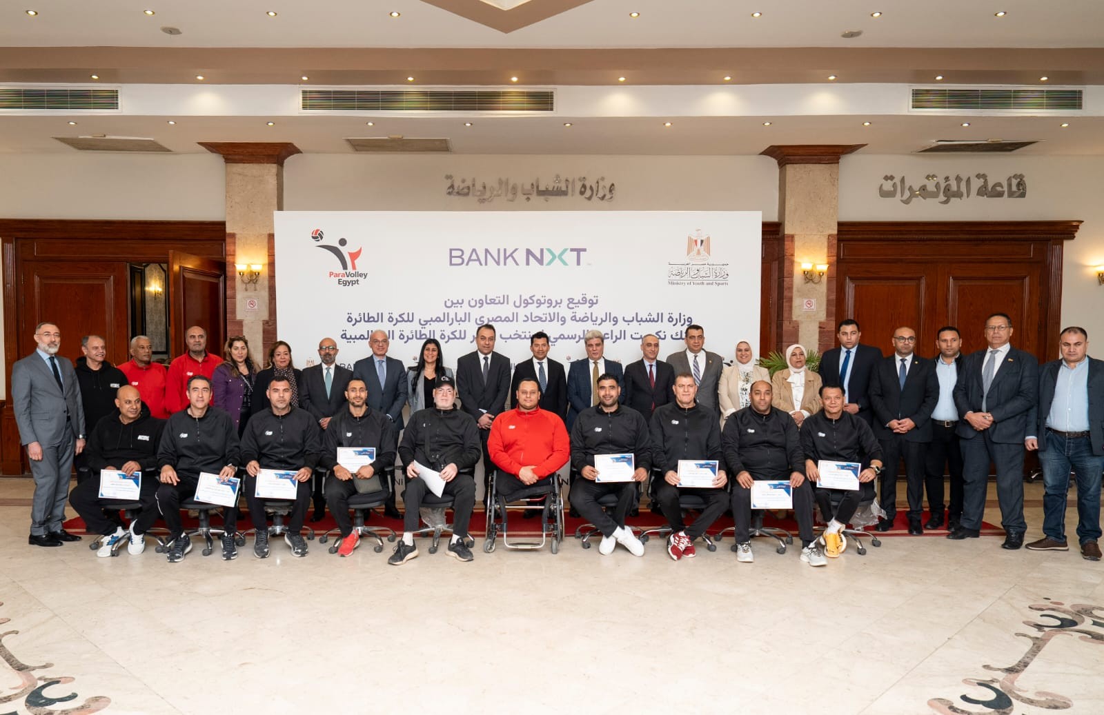 وقد وقّع عقد الرعاية من جانب الوزارة الدكتور محمد الكردي رئيس قطاع الرياضة ومن جانب بنك نكست إيمان بدر، نائب الرئيس التنفيذي للخدمات المصرفية للأفراد والتسويق والشمول المالي، وعن الاتحاد المصري للكره الطائرة البارالمبي الكابتن عماد رمضان رئيس الاتحاد.